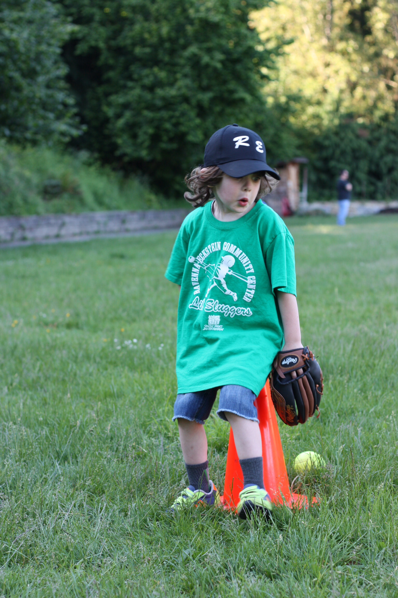 And, I'm relieved to say that, aside from that one night, we all 3 had a blast meeting new friends and Jack loved being part of a team and learning something new. He was quite serious about it at times- check out that look of pure determination when he's running the bases with his tongue sticking out, just as his Auntie used to do- and there were moments where he was completely the opposite of serious- when he twirled around in the field with his glove atop his head or when he sat on the base cones and pretended they were horses. In other words, he acted just a t-ball player should.