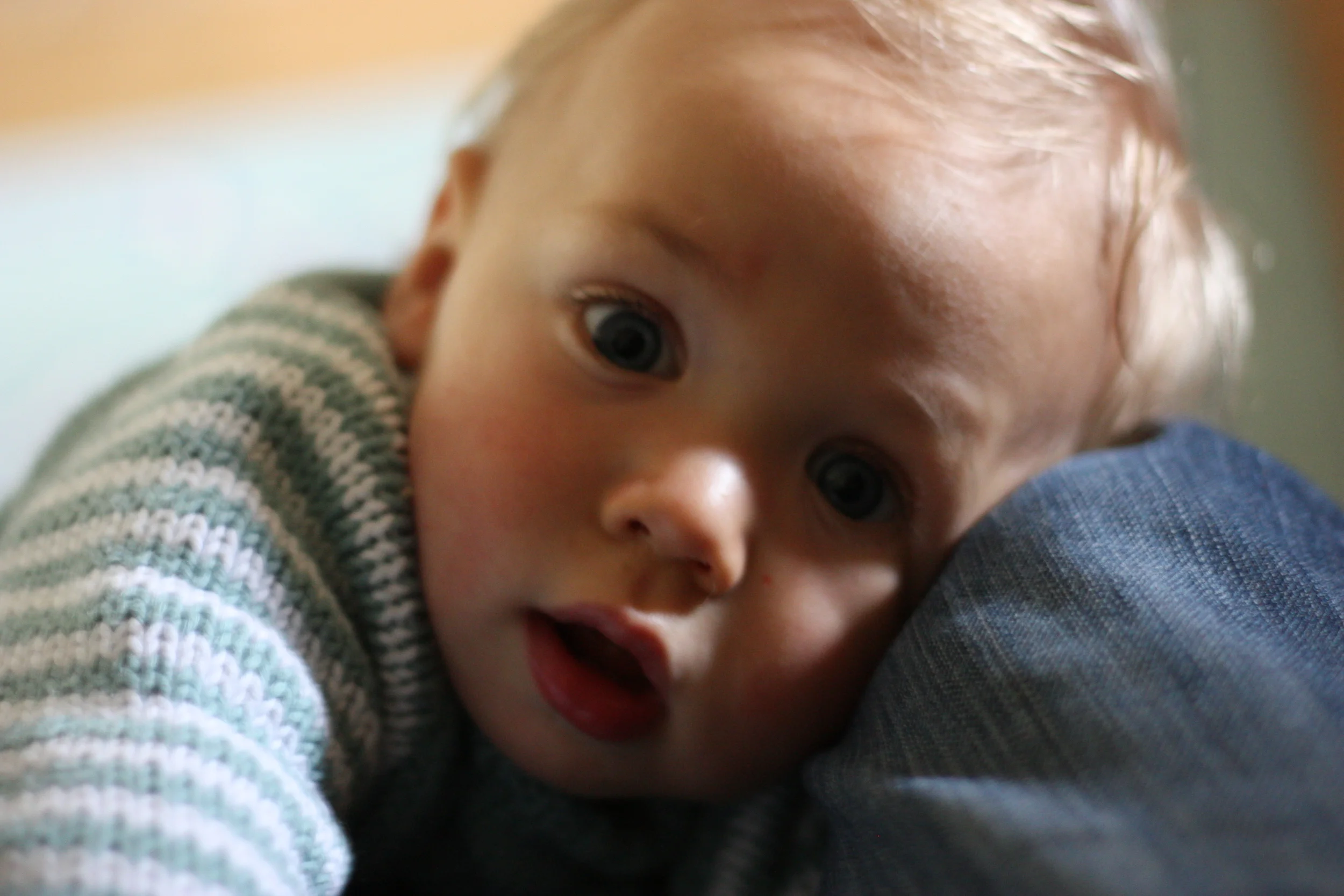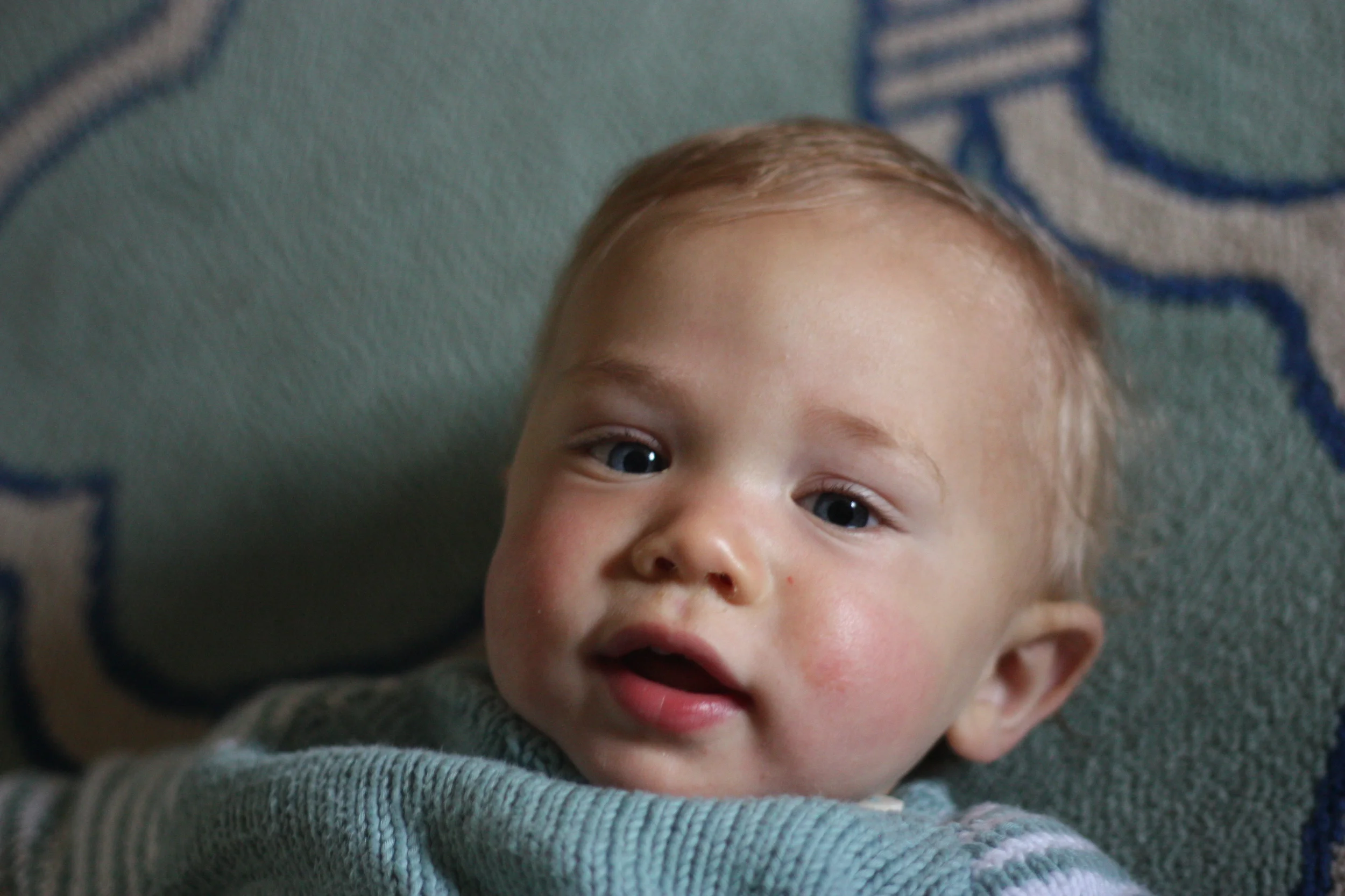 Rigby is such a joy. He smiles freely and often, and his smiles tell so much about his mood. He has smiles that are more like smirks when he is doing something "naughty" or when he sees you for the first time and tries to play it cool (doesn't want to appear surprised). He has smiles of pure joy when he thinks something is funny, this happens especially during games of Peek-a-Boo or something else that he is playing with Jack. He has a smile of relief when you pick him up, get him out of the stroller after a long time of sitting, or when you first come in his room in the morning or after naps. And, he has smiles filled with love and contentment.